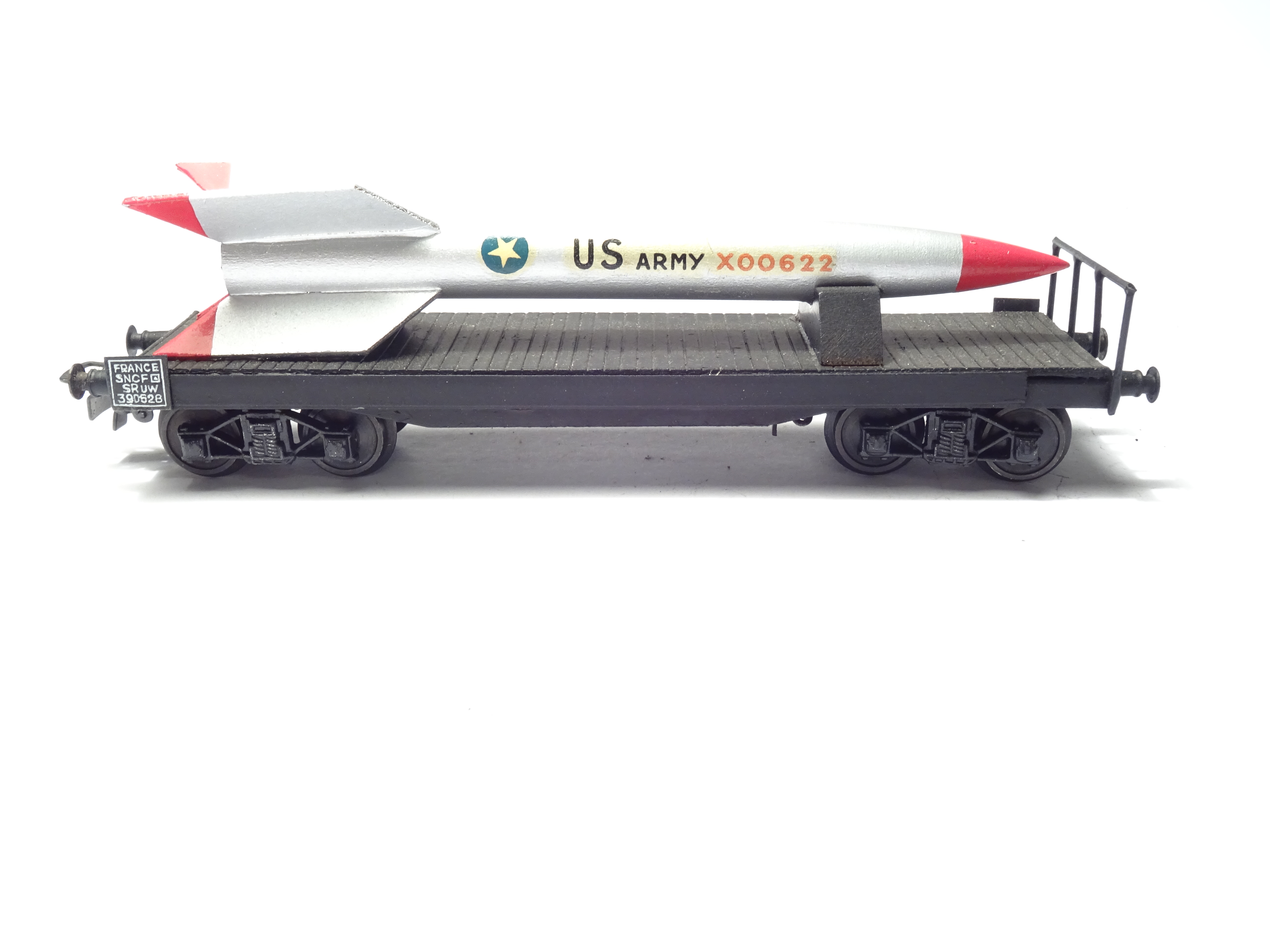 Der Wagen hat Federpuffer. Die Rakete ist aus Holz uns ist