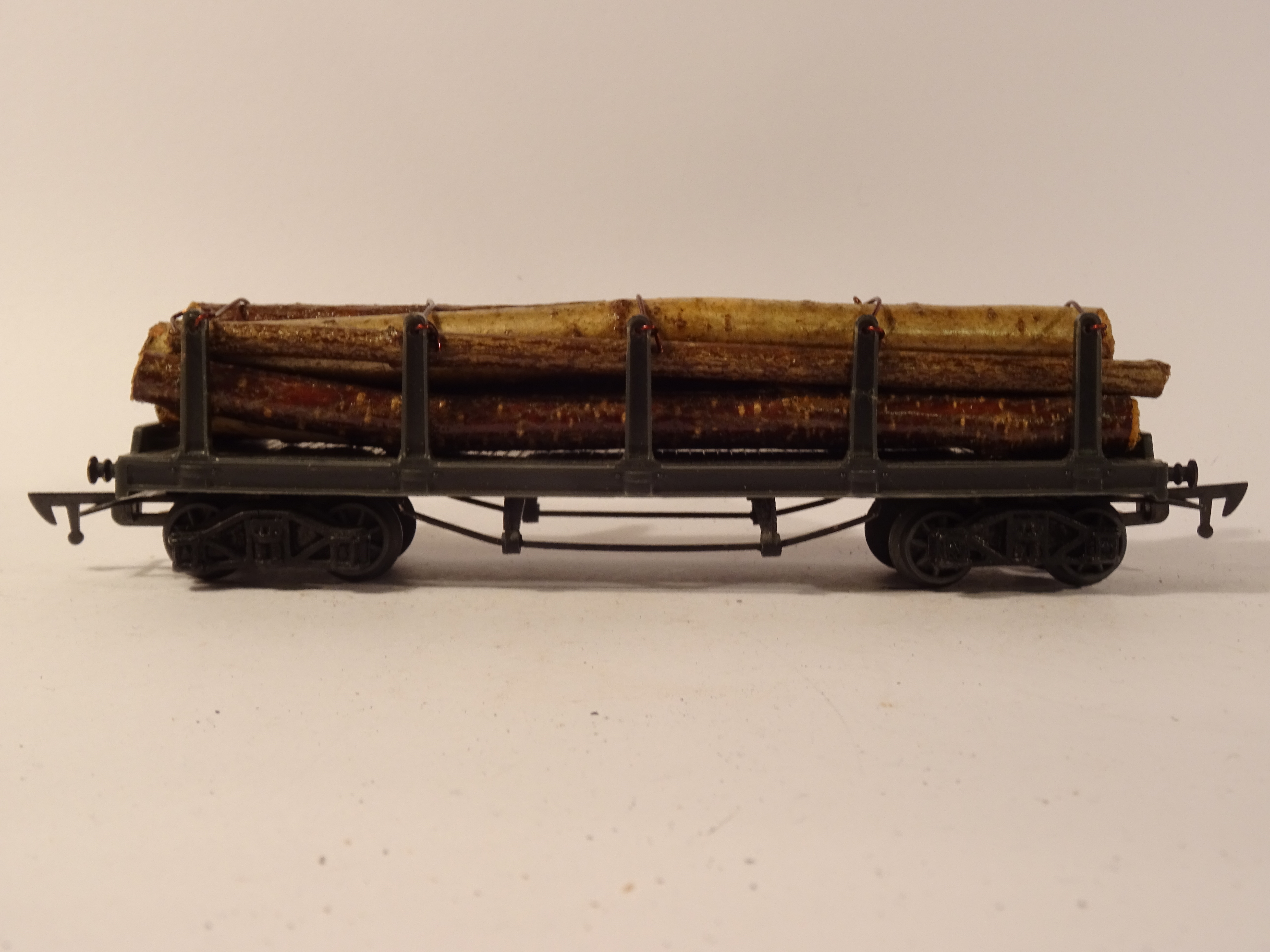 Rungenwagen 4-Achs mit Holzstämmen grau