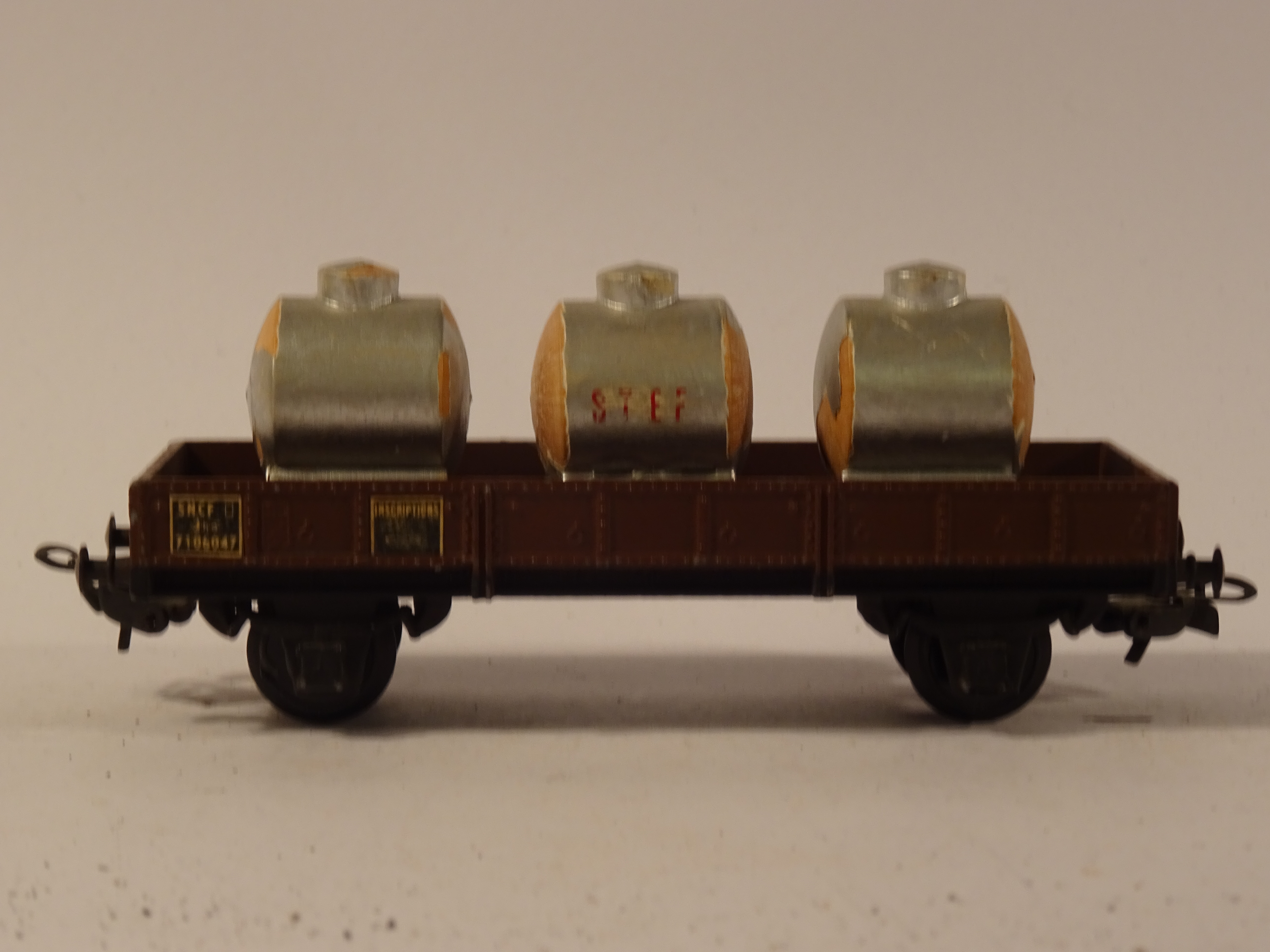 Die Wagenladung besteht aus 3 Milchkanistern, sie stammt von SMCF