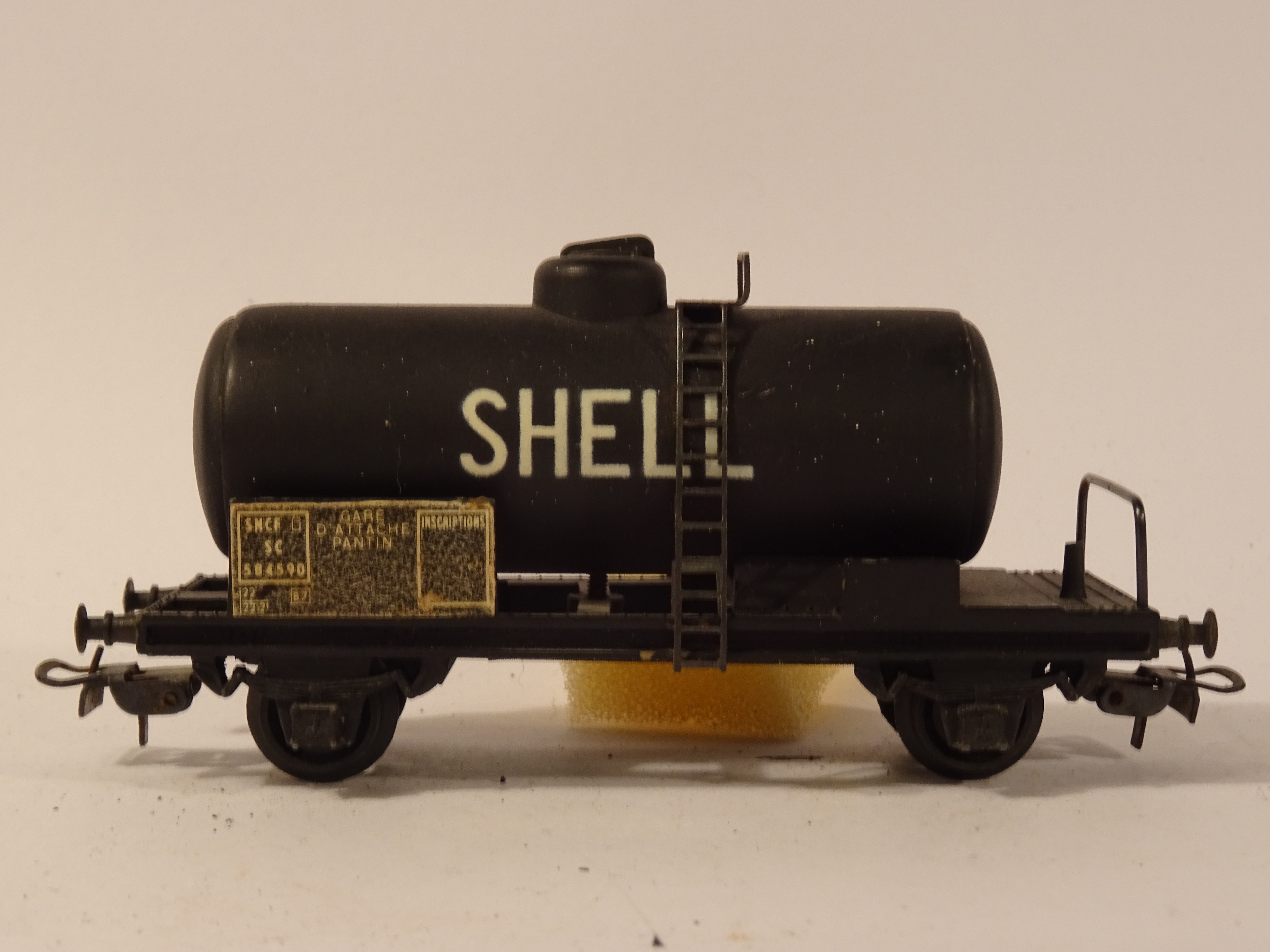 Der Wagen ist ein schwarzer SHELL, die Schrift ist weiss