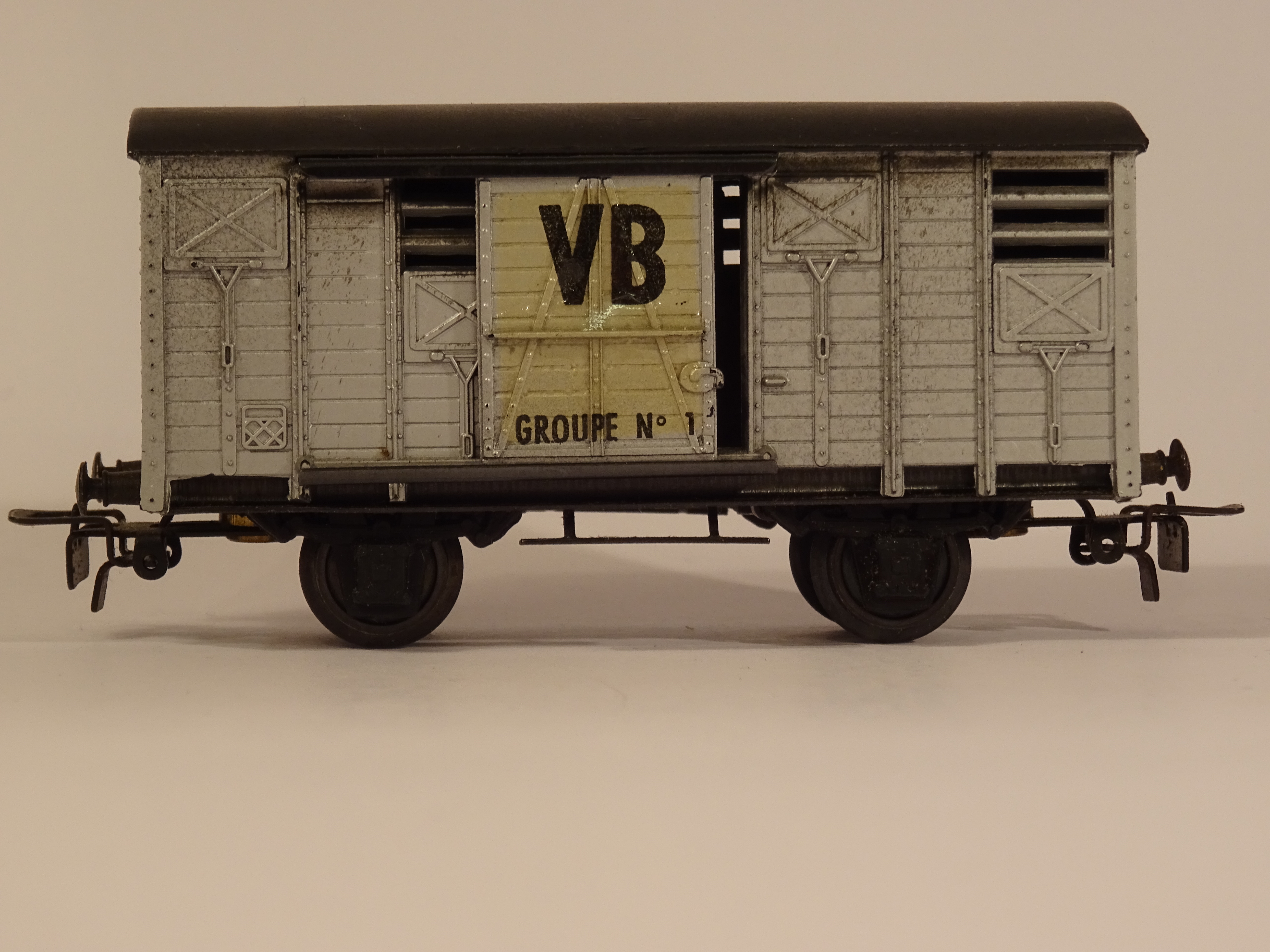 Der Wagen hat auf einer Seite Beschriftung Train Desherbeur Groupe no 1, auf der andern VB Group No 1