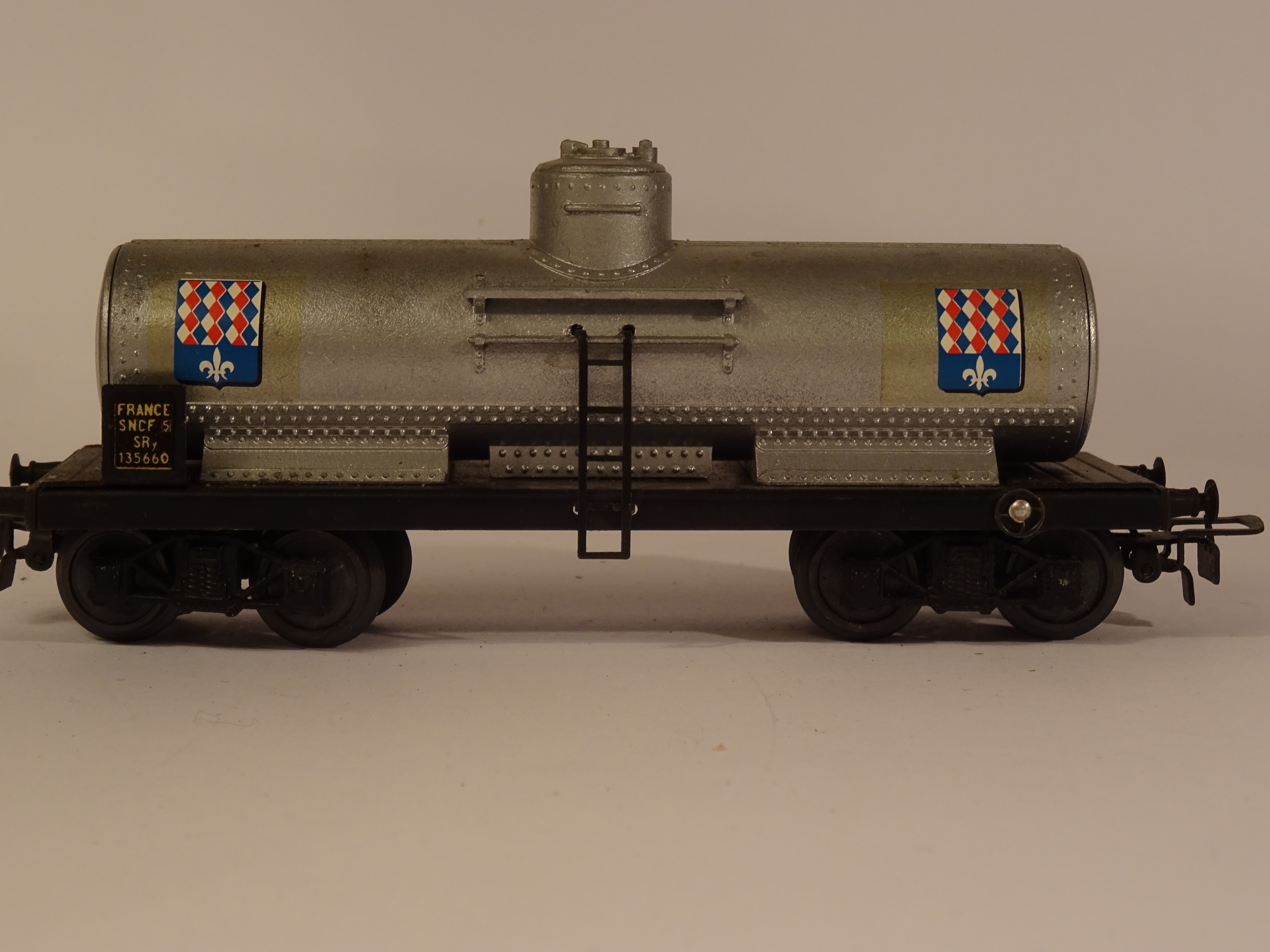 Der Wagen hat feste Puffer, er ist silbern und hat 2 Kleber auf einer Seite, auf der anderen Antar