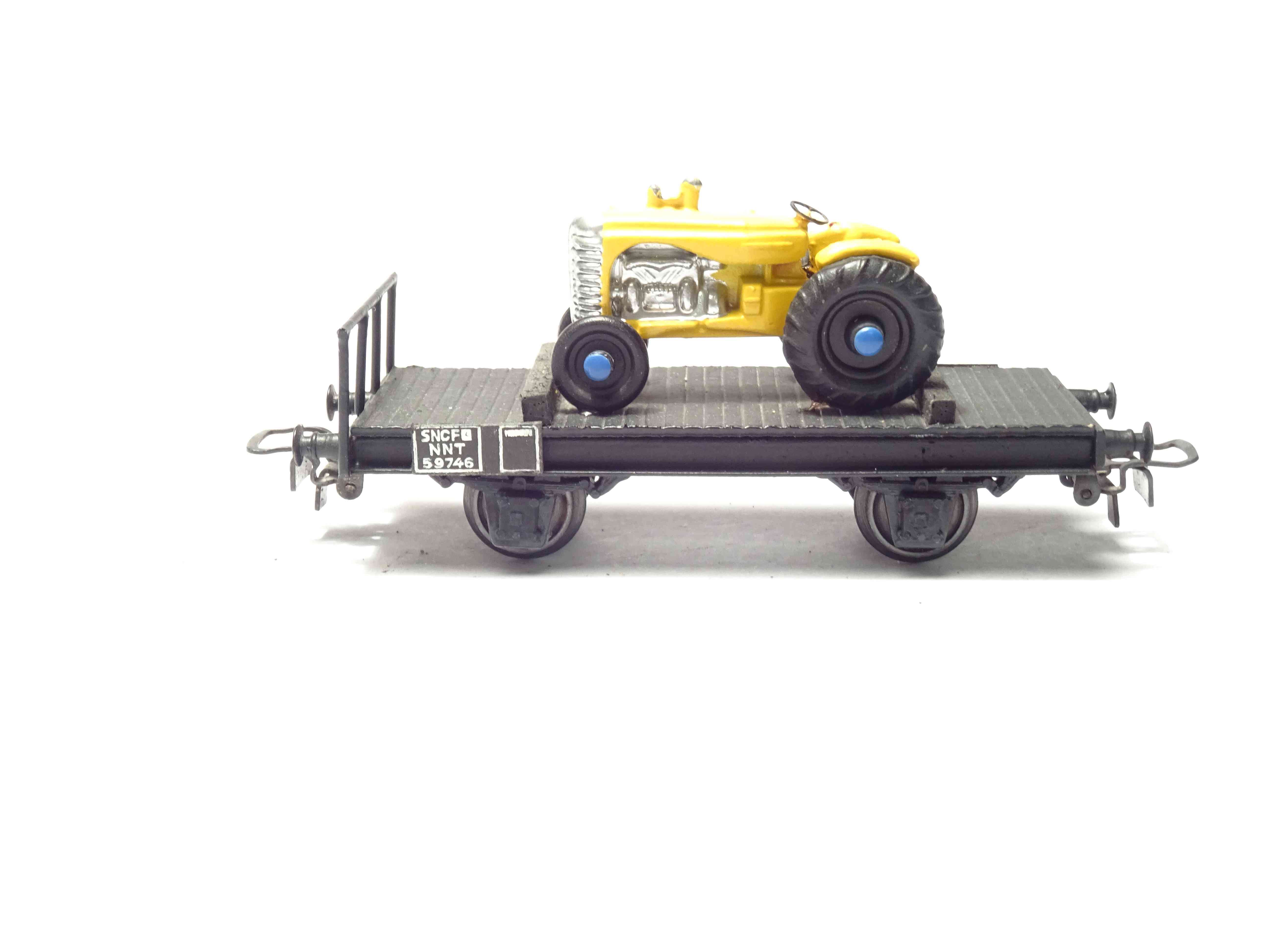 Flachwagen mit Traktor (gelb) 2-Achs