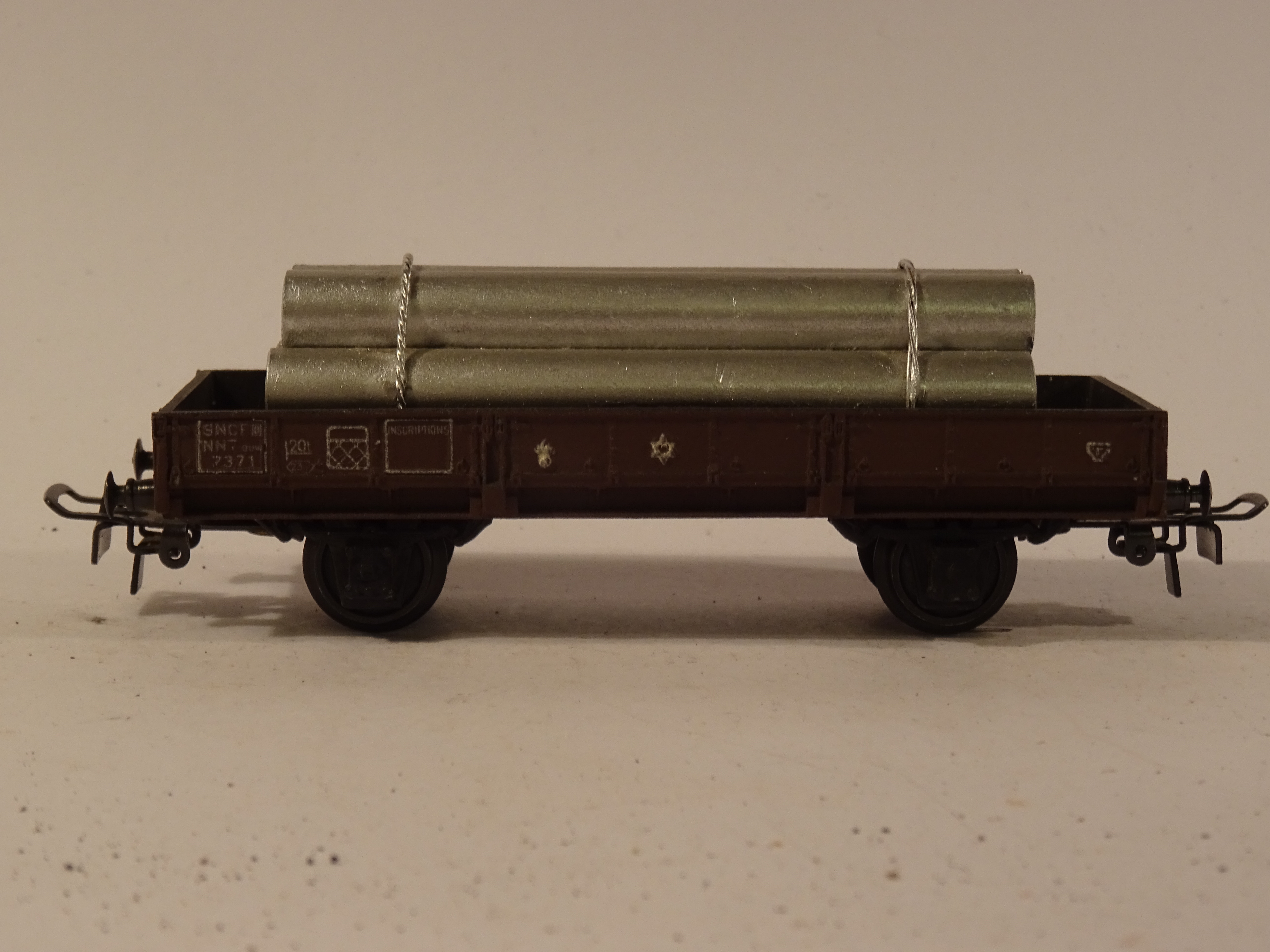 Niederbordwagen mit 5 silbernen Röhren 2-Achs braun