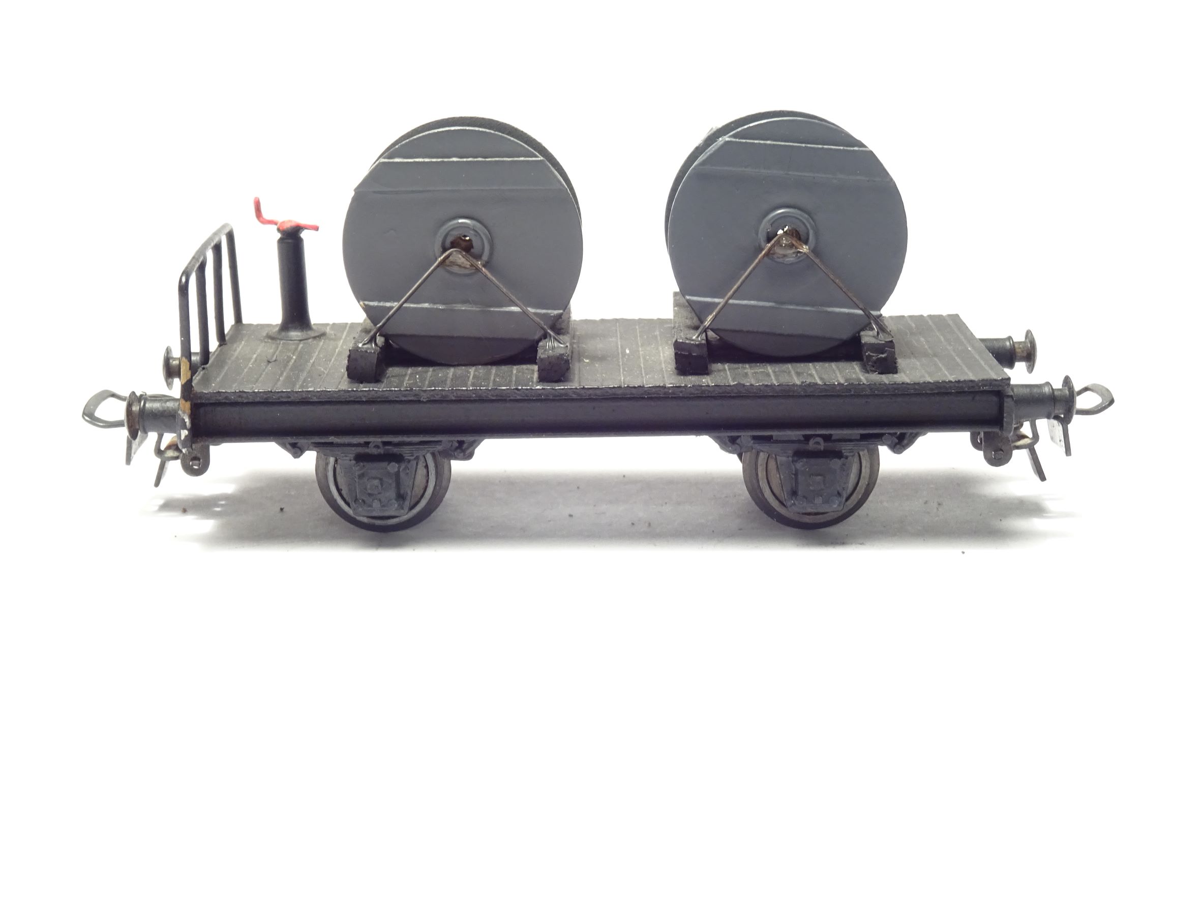 Flachwagen 2-Achs mit 2 Kabelrollen grau