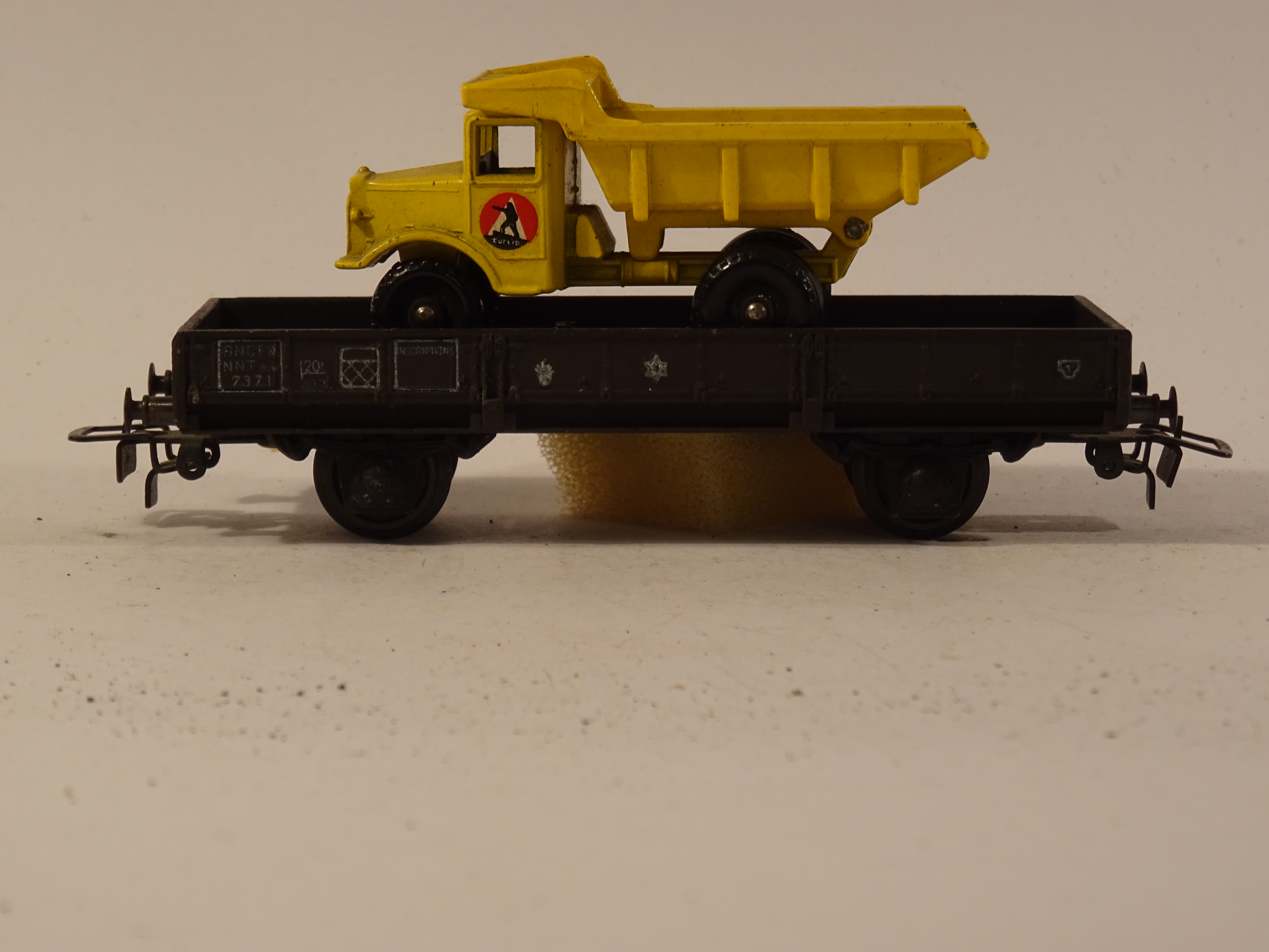 Der Wagen hat feste Puffer, der Camion von Lesney ist gelb.
