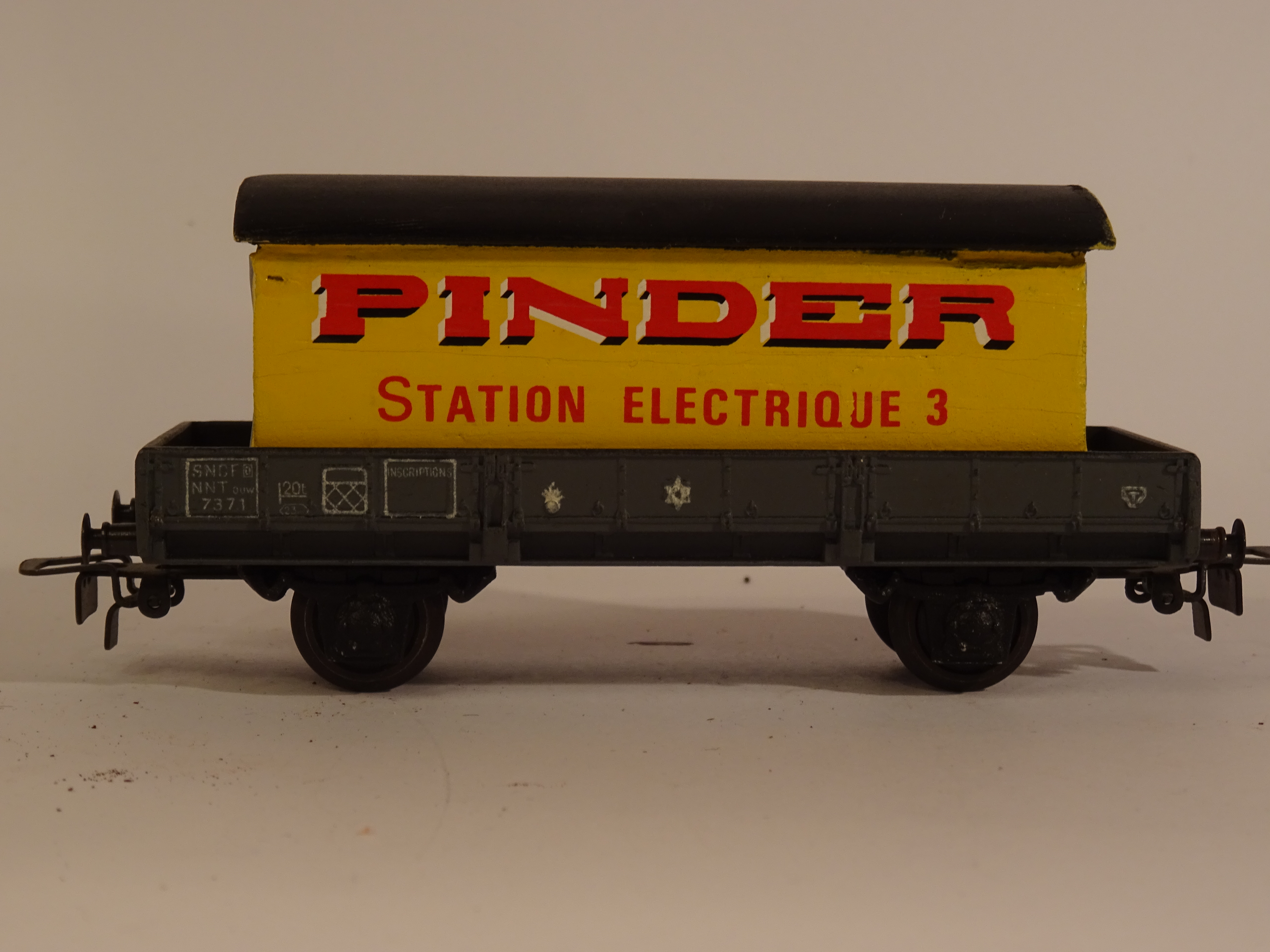 Niederbordwagen mit einem Container von Pinder 2-Achs grau