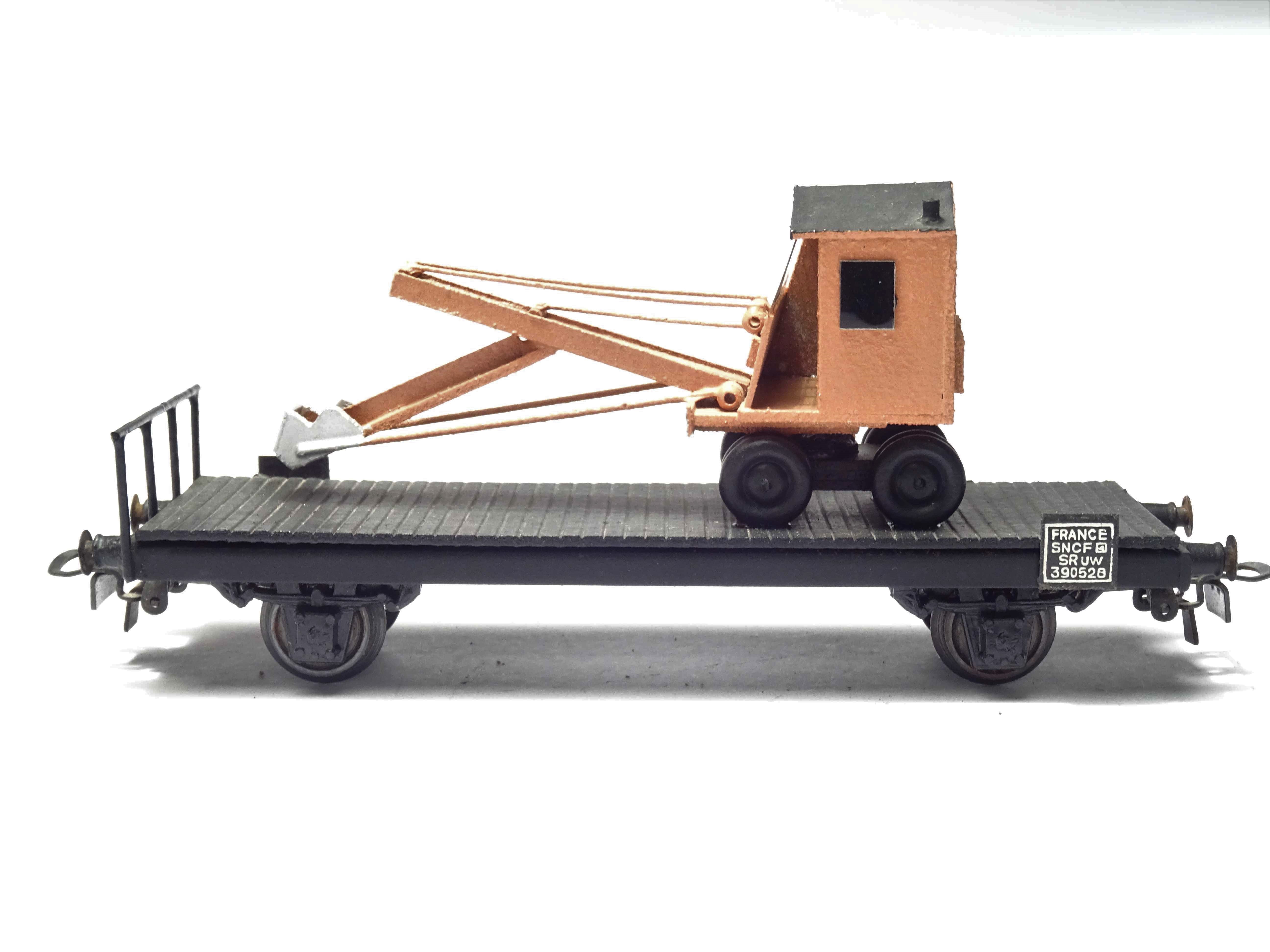 Der Flachwagen ist mit einer Pellteuse beladen.