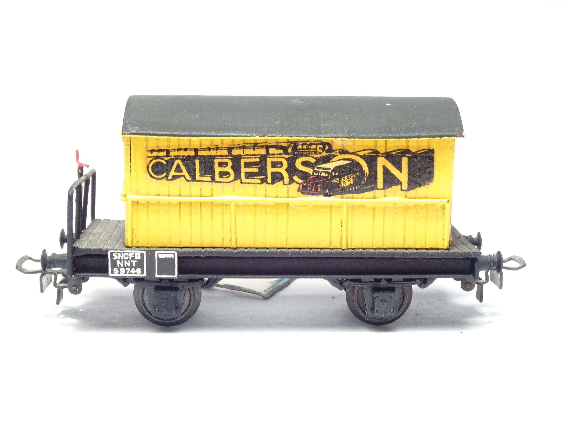 Flachwagen mit einem Container Calberson gelb 2-Achs